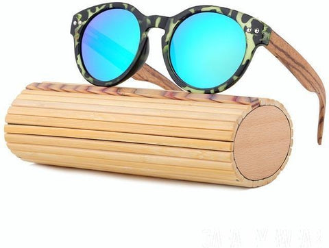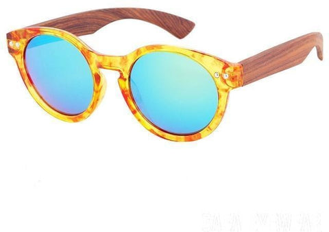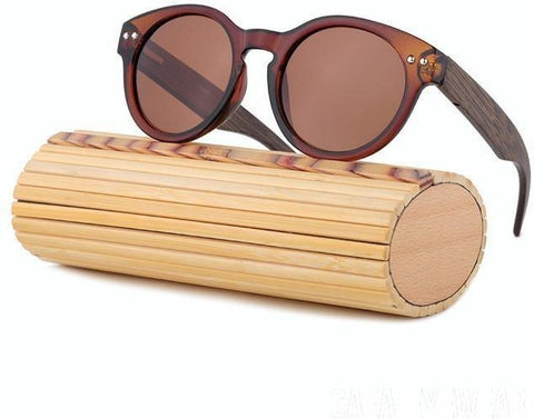 Round Wooden Temple Sunglasses Women Polarized UV400
